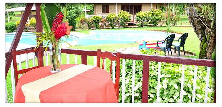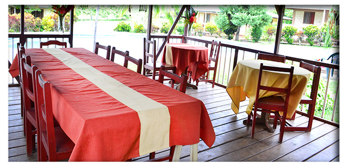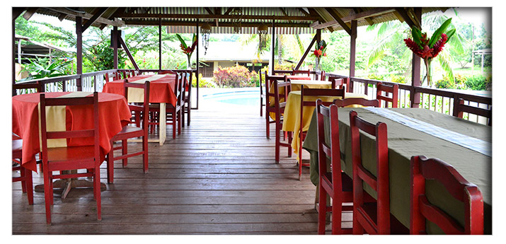Nuestras instalaciones cuentan con amplias áreas de esparcimiento, para realizar caminatas, canopy, fotografía, pesca, entre otras actividades al aire libre, contamos con plantaciones agrícolas que usted podrá conocer y disfrutar . El servicio de restaurante le ofrece desayunos y almuerzos para deleitar la rica gastronomía regional. Nuestras instalaciones cuentan" con amplias áreas de esparcimiento, para realizar caminatas, canopy, fotografía, pesca entre otras actividades al aire libre, contamos con plantaciones agrícolas que usted podra conocer y disfrutar. Nuestra piscina se encuentra disponible las 24 horas, también contamos con piscina para niños rodeado de un paisaje tropical, ideal para disfrutar de una tarde refrescante y relajante. Contamos con habitaciones; individuales, matrimoniales, dobles, triples, cuádruples y bungalows familiares. Atención personalizada las 24 horas, contamos con servicios de wifi, lavandería, cochera, TV cable, agua caliente, frigobar, cocina y seguridad para su tranquilidad. Contáctenos y díganos que es lo que necesita para enviarle toda la información necesaria para que pase una excelente y relajante estadía conociendo la hermosa provincia de Satipo. ContáctenosNuestro Restaurant